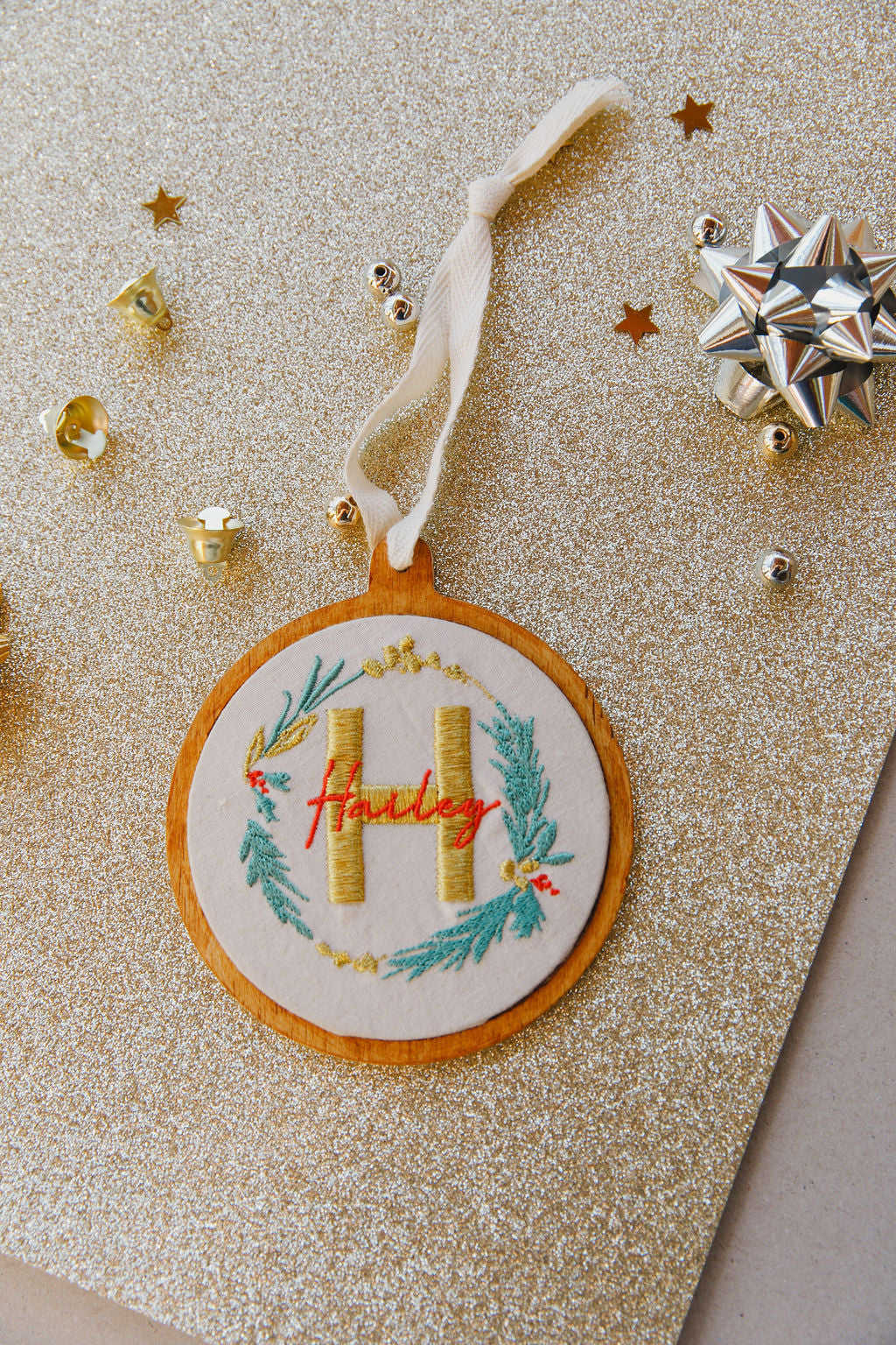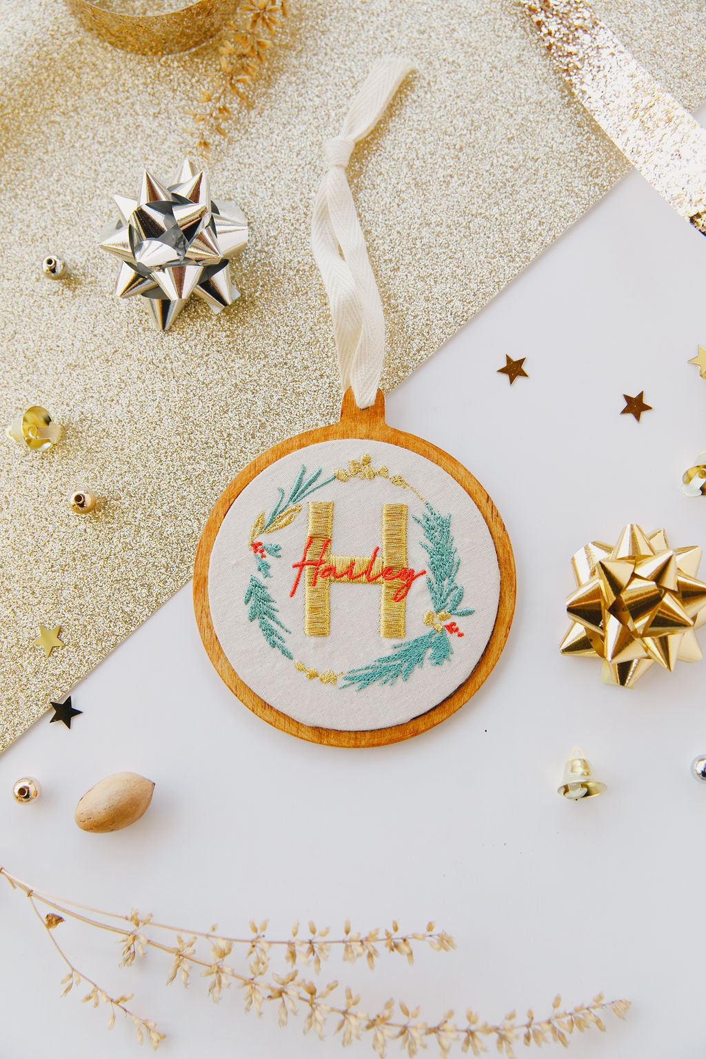 Add a heartfelt touch to your holiday décor with this beautiful embroidered Christmas decoration.