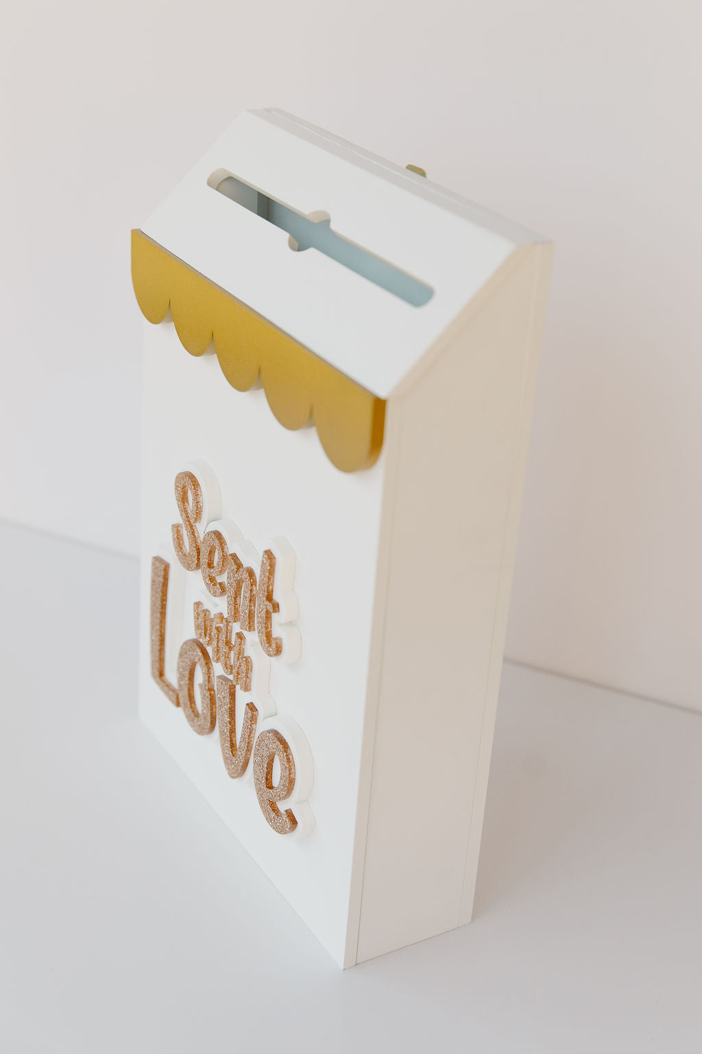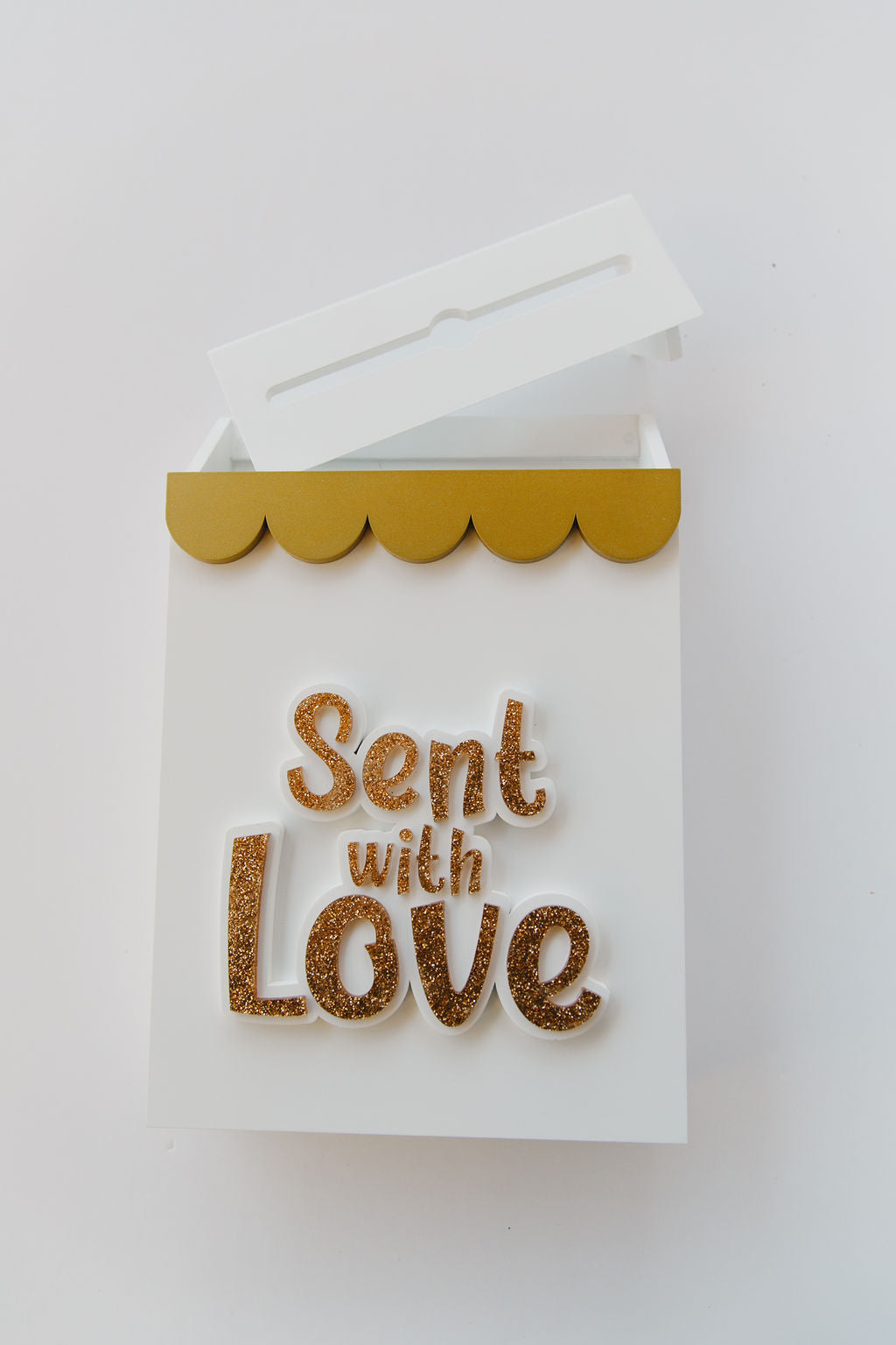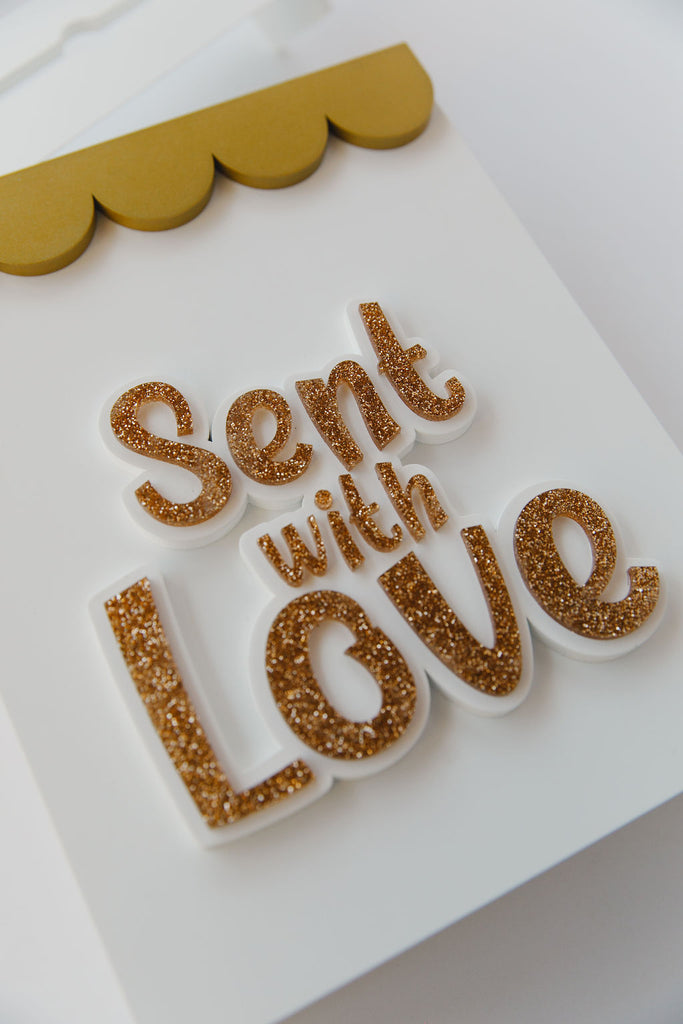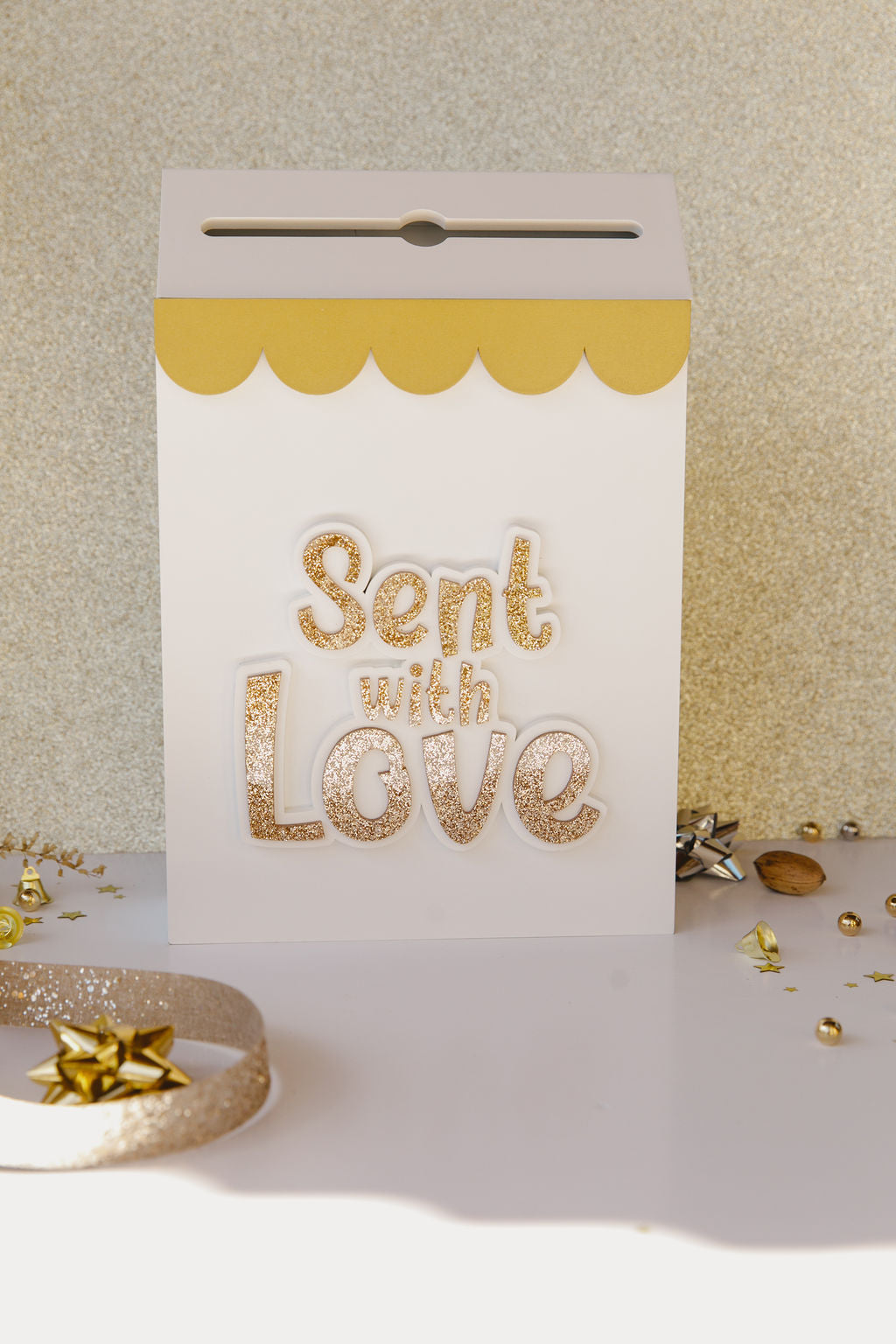This charming "Sent With Love" letter box is crafted from white-painted wood with a golden glitter acrylic message on the front. Designed to encourage heartfelt communication, it’s perfect for sending letters to Santa at Christmas or sharing notes year-round among family members at home.