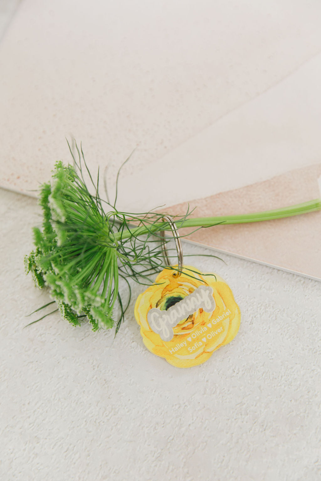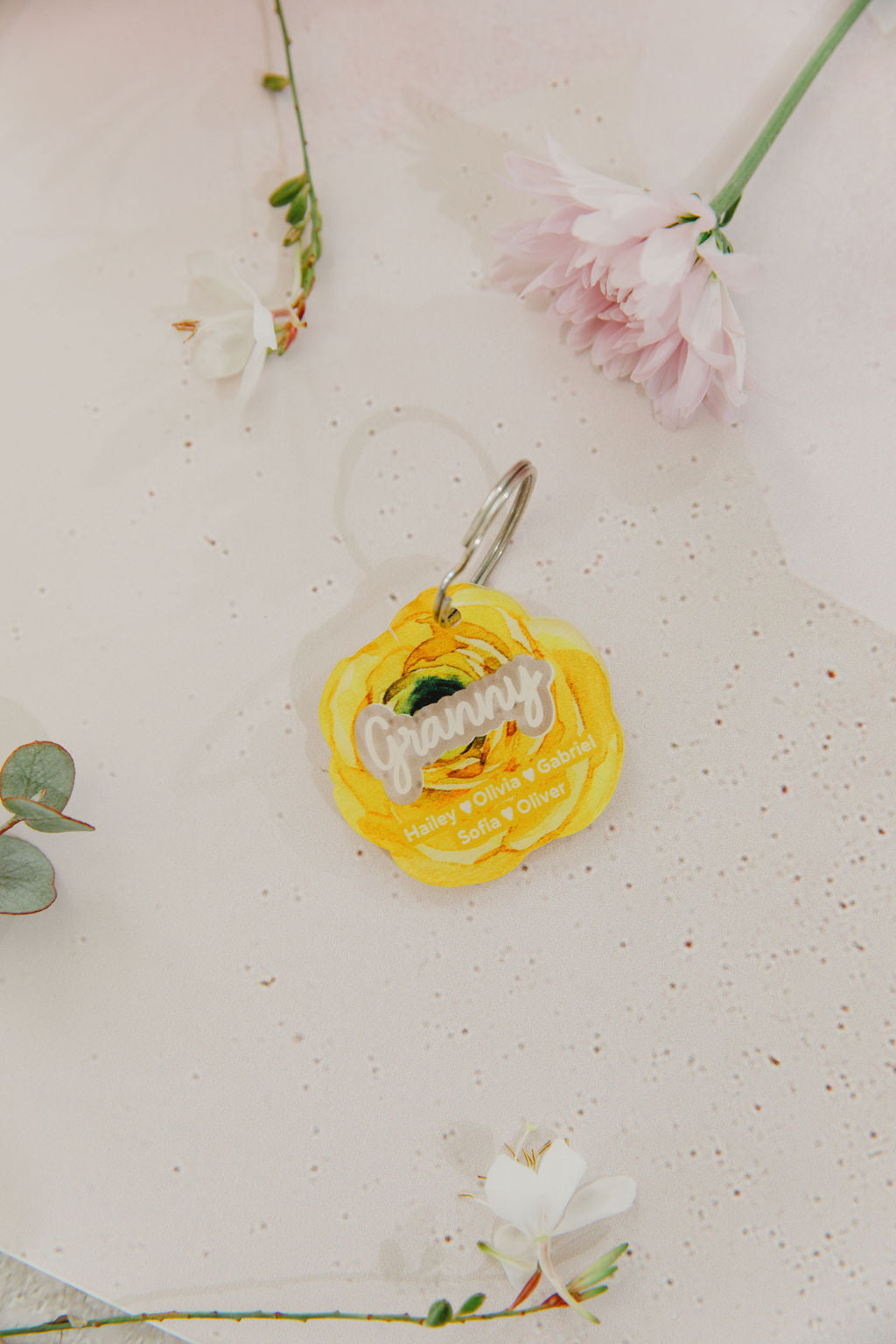 Personalised acrylic keyring for a special woman, personalised with her name, along with her children / grandchildren's names.