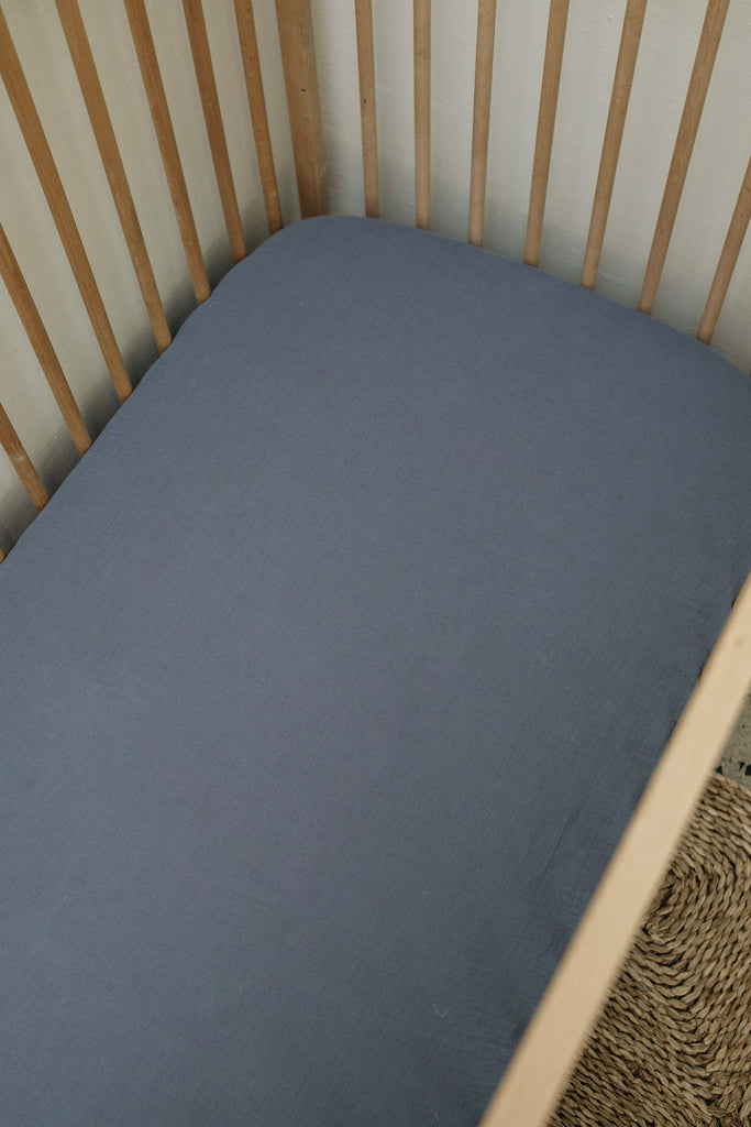 Blue Grey Muslin Cot Fitted Sheet