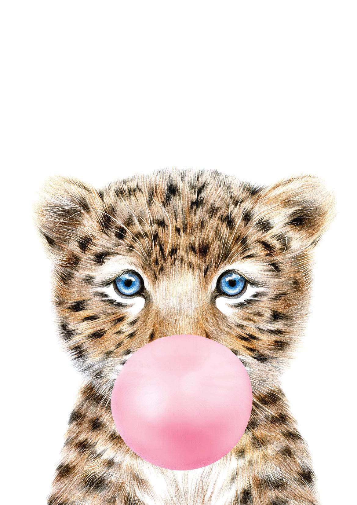 This cute leopard bubble gum image is a fun print for your little one's room or playroom. It is part of a beautiful collection of six safari animals.