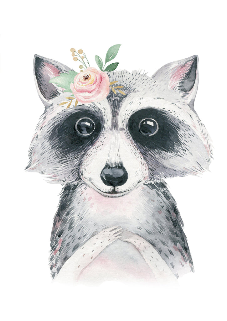 Floral Raccoon - wall art print.