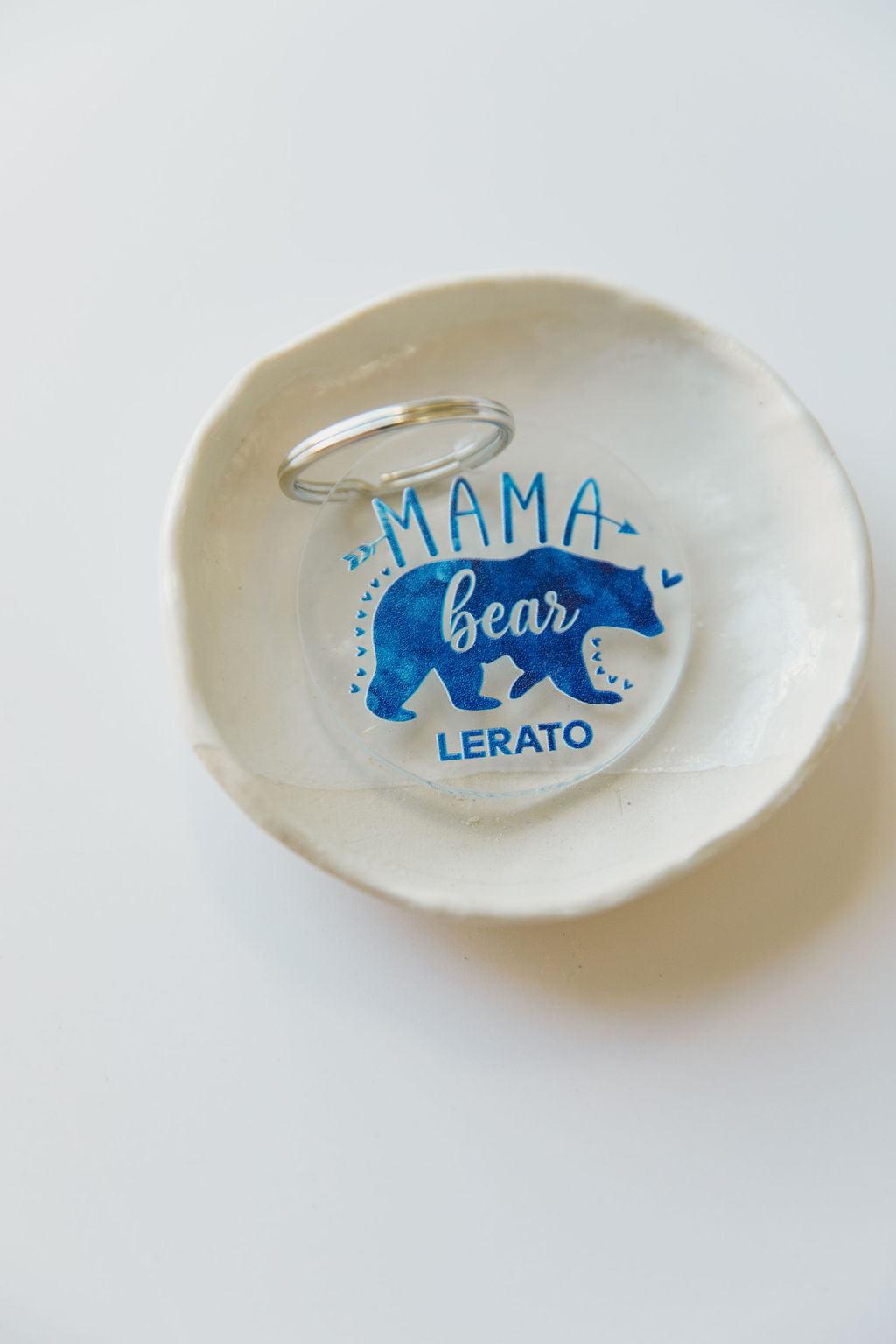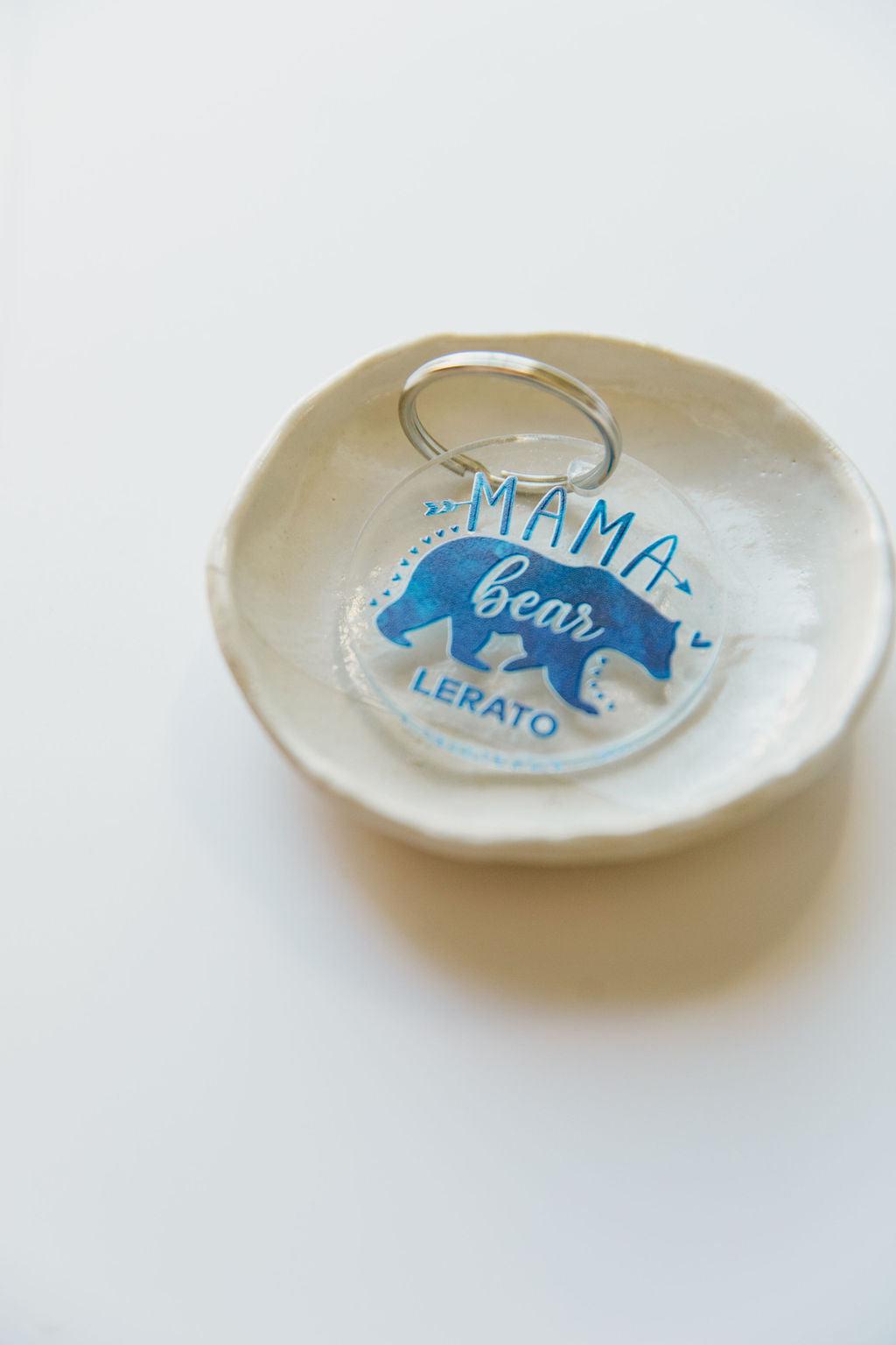 Produced in clear acrylic with uv printed details. Supplied with the keyring loop.