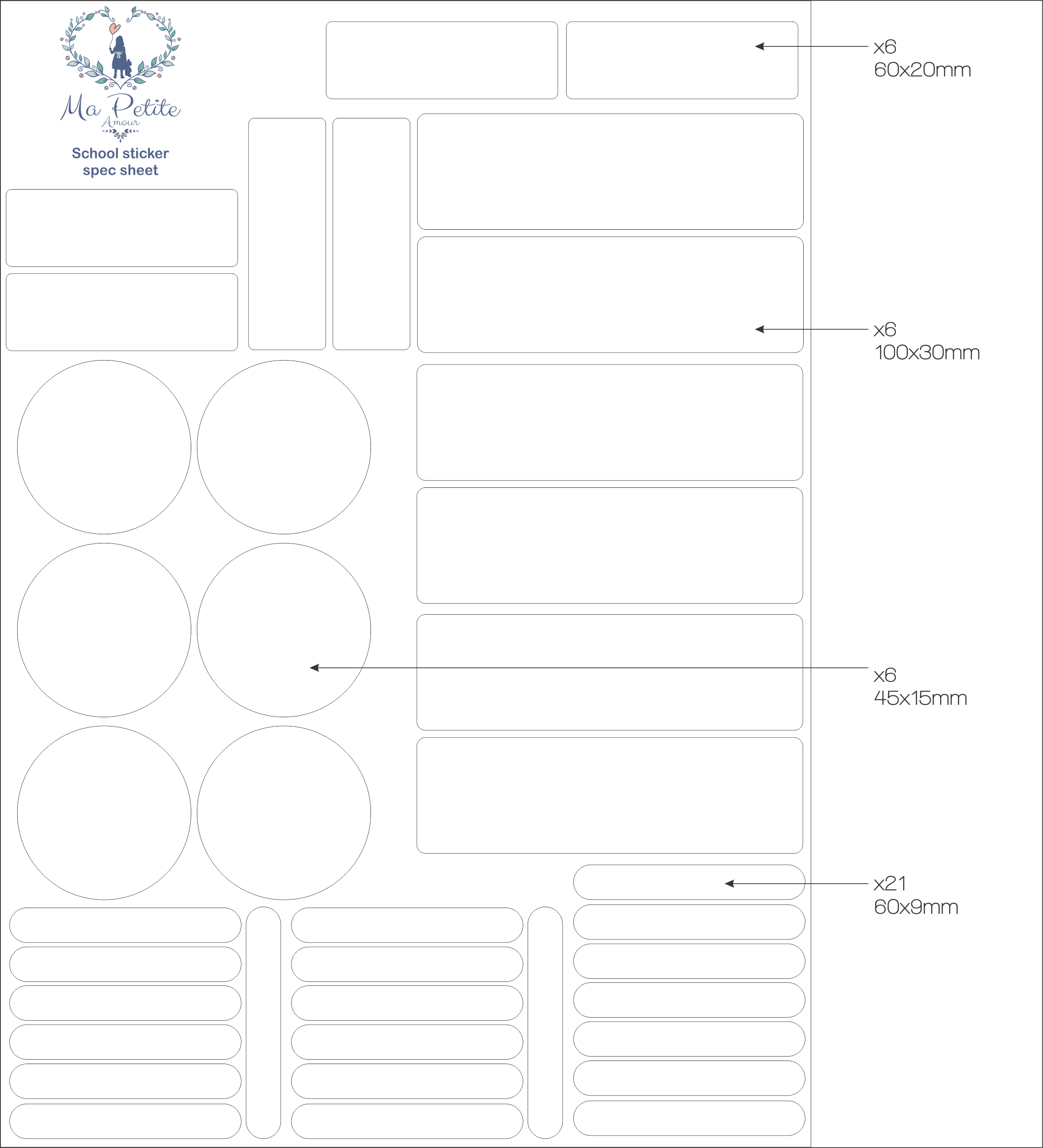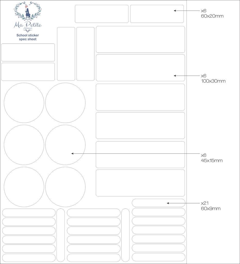 A pack includes 39 school labels in a variety of sizes.