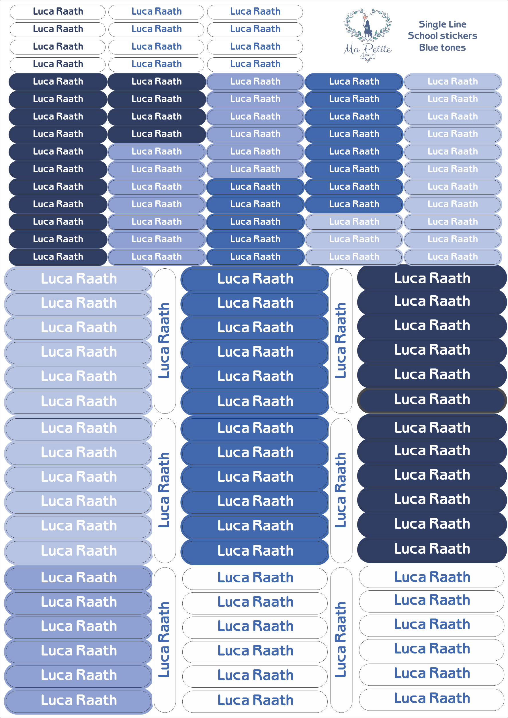 Strip school labels to help label all your little one's smaller school items. Personalised with their names in an easy to read font.
